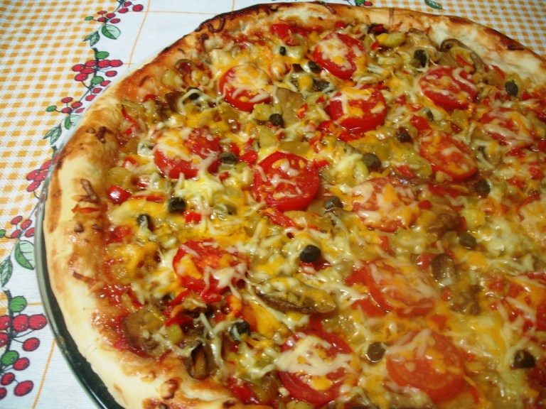 2. Uma pizza deve sempre ser saboreada sem culpas, e há momentos em que apetece e pronto 🙂 Gosto desta versão vegetariana. Faço algumas vezes com rodelas de tomate fresco, courgette, beringela, cogumelos e mozarella, é a minha favorita!