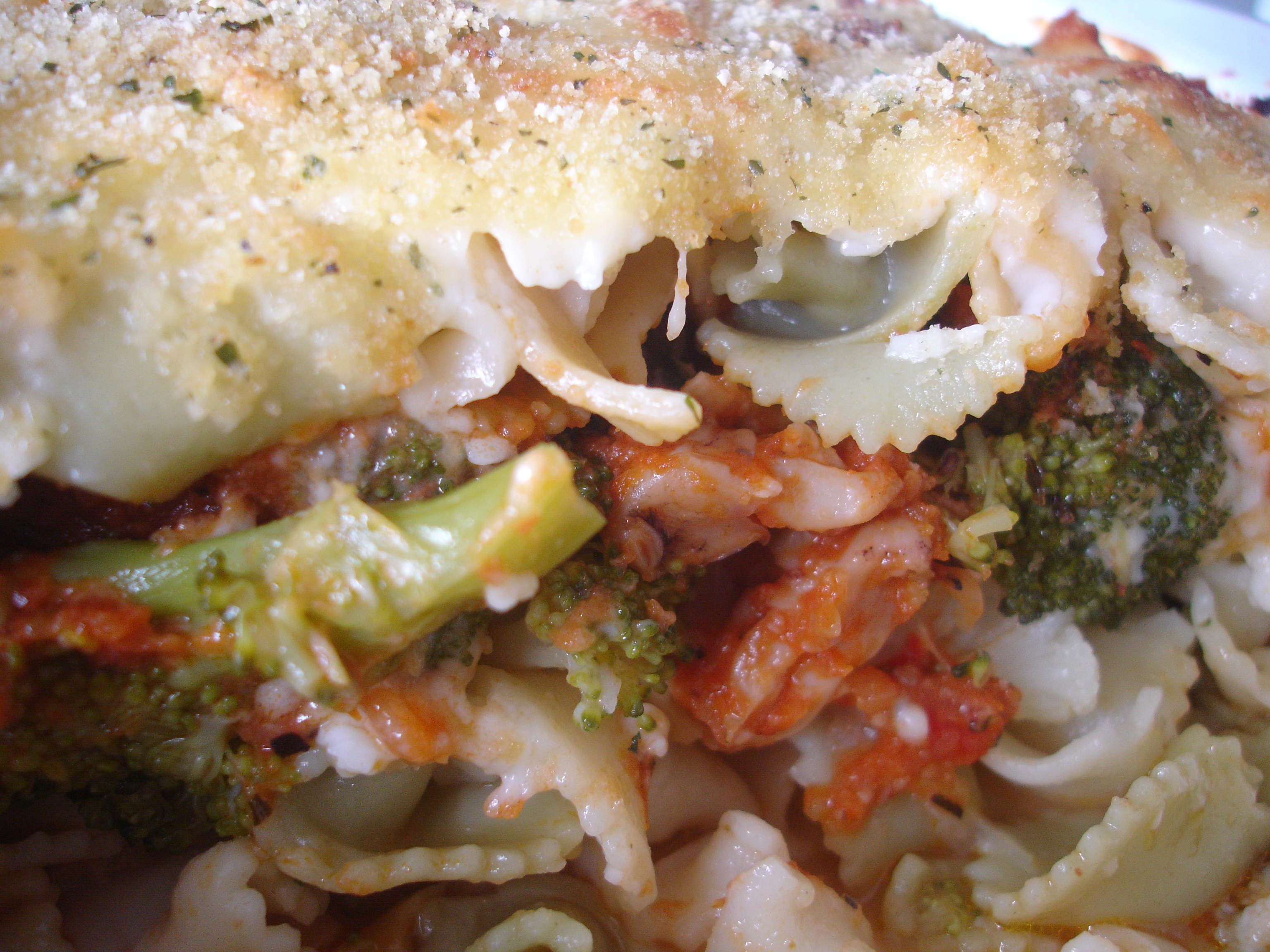 Coloquei no fundo de um tabuleiro umas colheradas de molho béchamel, de seguida uma camada de massa, o preparado com as lulas, mais uma camada de massa, os legumes e o resto do molho béchamel. Polvilhei com o pão ralado.
