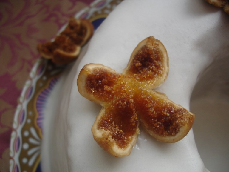 Hmmmm, bolo de figos secos, que maravilha que deve ser, hmmmmmm! Dispenso a cobertura, mas confesso que a mesma lhe dá um toque de muita graça e faz uma bela decoração com os figos abertos em flor 🙂