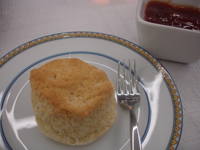(Desculpem o pormenor do garfo no prato. Em vez de pegar na faca para barrar o scone saltou-me o garfo para as mãos. Pressas que ficam registadas!)
