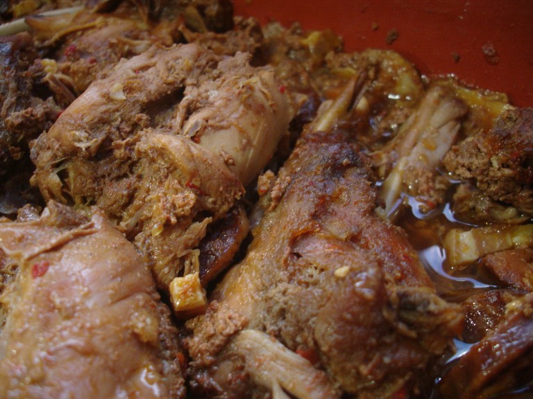Antes de se colocar o coelho numa assadeira para ir ao forno, coloca-se o coelho com o vinha d’alhos numa panela e dá-se uma fervura na carne (este é um dos segredos)