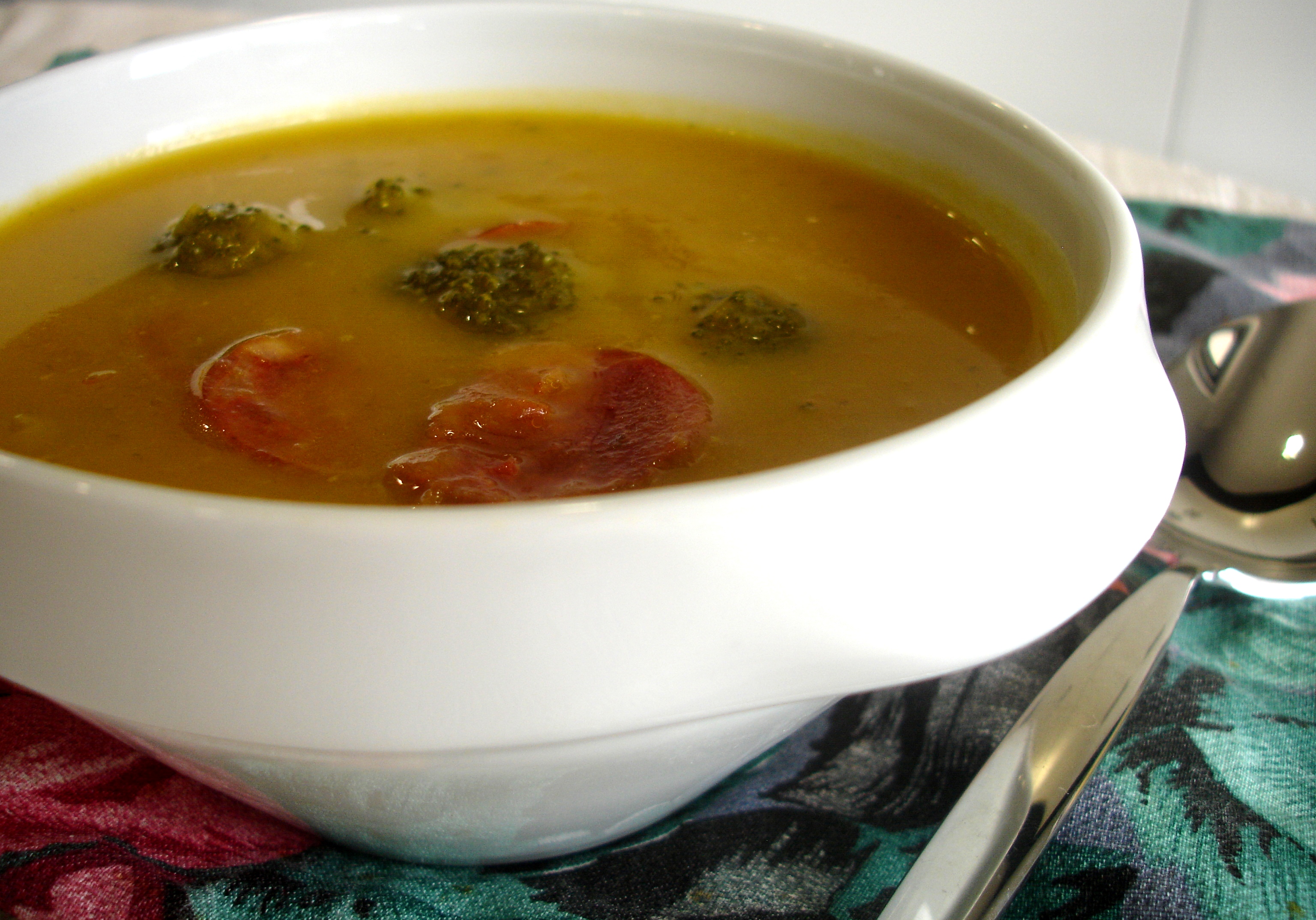 Vale a pena experimentar. A linguiça confere um sabor muito bom. Podes sempre colocar mais quantidade de´cenoura e menos de abóbora ou utilizar chuchu/caiota.