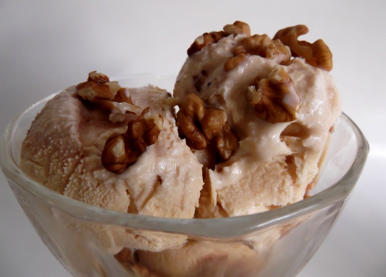 confesso que sou um bocado geladódependente! adoro e como em qualquer altura do ano. mas com o sol e calor apetece ainda mais 🙂 adoro gelado de noz assim como este, com pedacinho para comer 🙂