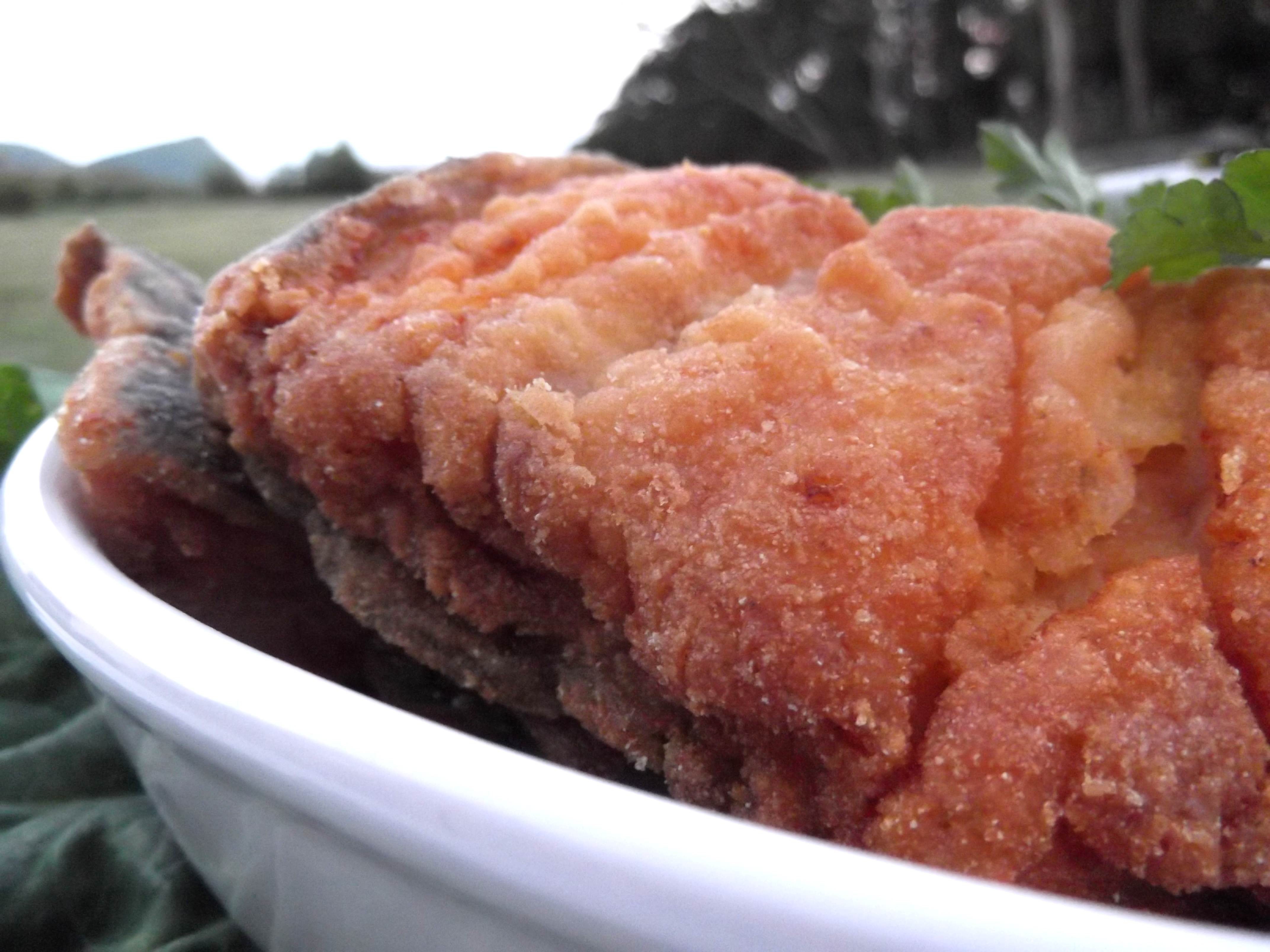 Secam-se as postas com papel de cozinha antes de envolvê-las em farinha de milho.