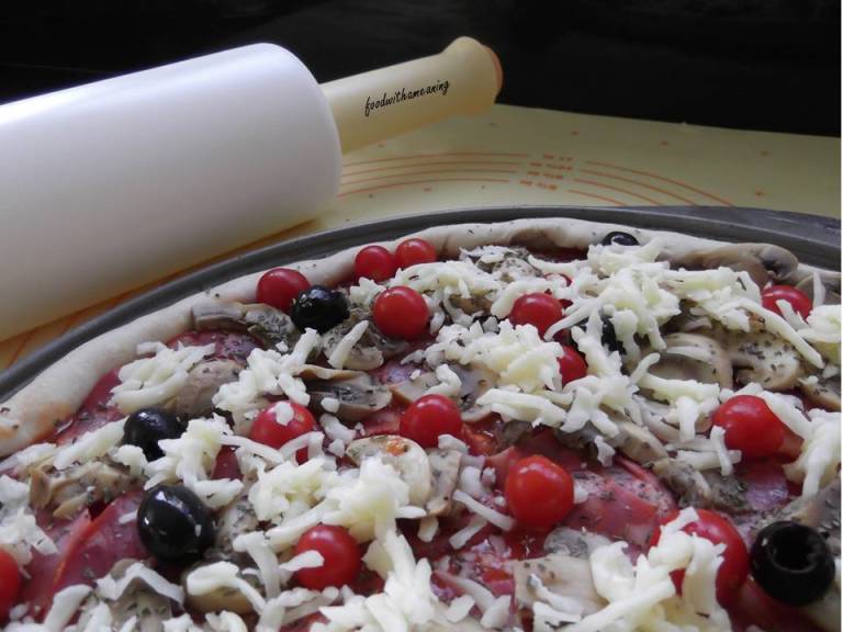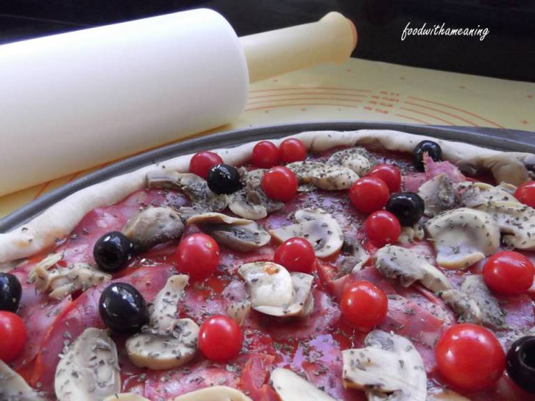 Ambas as fotos foram tiradas antes da piza ir para o forno. Não me ocorreu tirar depois:(