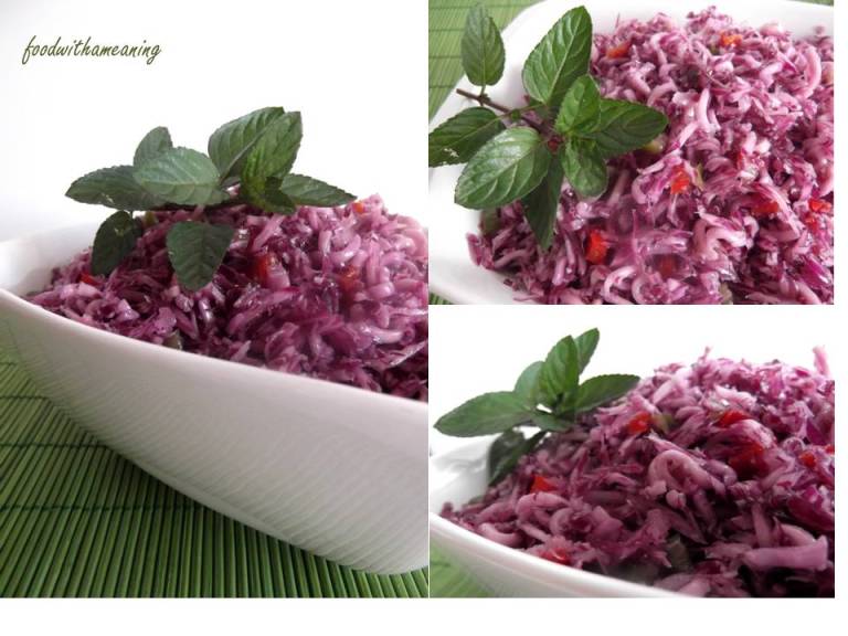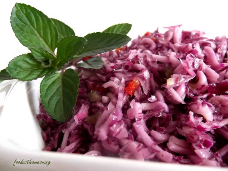 A massa macera com os sucos libertados da couve e com o açúcar, o vinagre e o óleo, tornando-se macia, com a consistência final de cozida.