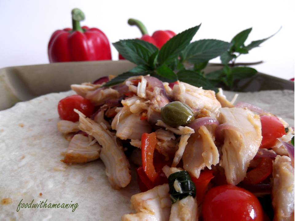 Esta foi uma das refeições ligeiras que preparei para os miúdos. Caraterizou-se por ser uma forma de aproveitar sobras de frango de churrasco e de incluir legumes da nossa horta na refeição, de maneira mais ou menos disfarçada.
