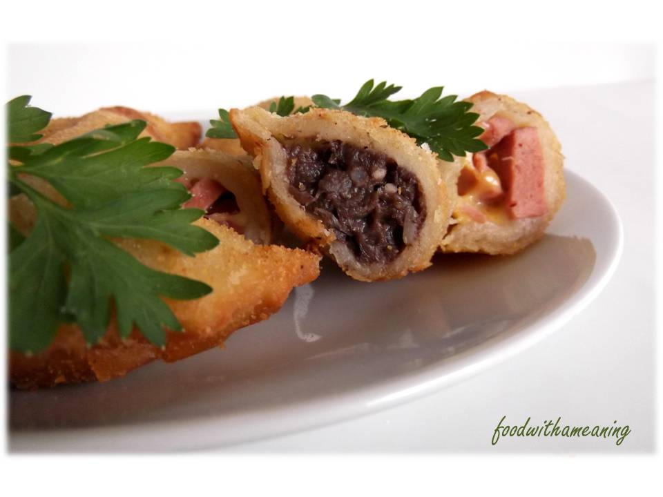 Os rissóis têm um recheio bem original, salsichas! Acreditas que se passam meses que não como rissóis? Talvez tenha que te encomendar. Beijinhos e boa semana.