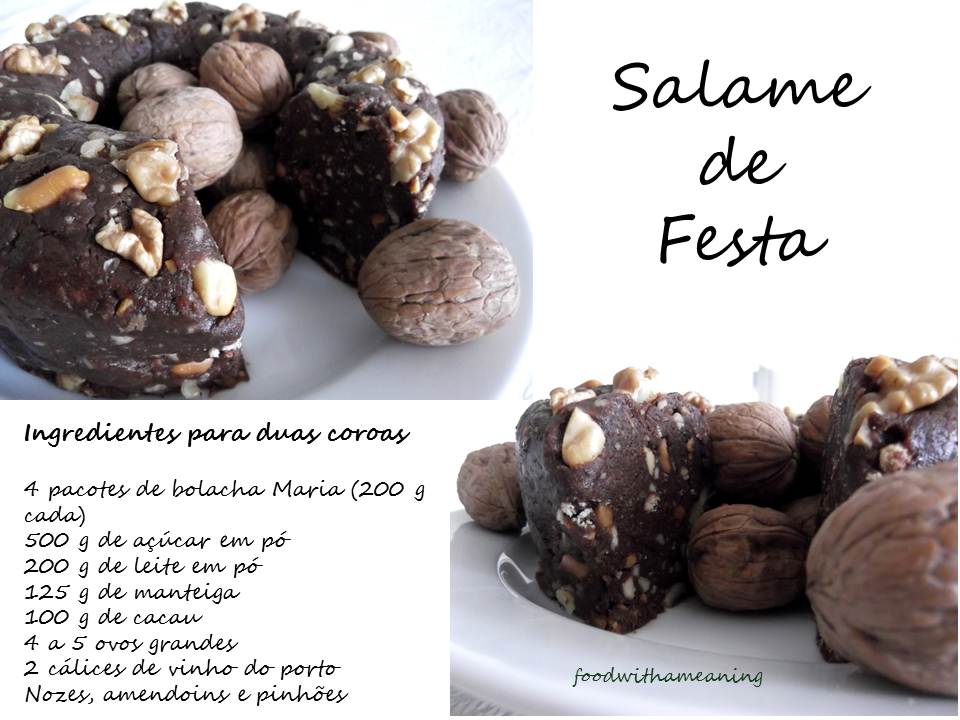 Adoro salame, não faço mais vezes para não abusar, e este com frutos secos parece-me divino