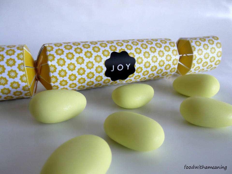 Esta ideia foi-me apresentada pela minha amiga Dulce por altura do Natal. Os miúdos e os graúdos deliraram com o presente. A minha filhota, que é uma colecionadora, para não a chamar de gatherer, pediu logo se podia ficar com os crackers. Guardou-os religiosamente numa gaveta. Hoje, enquanto fazíamos arrumações no quarto, encontrei os embrulhos de papel muito bem preservados. Assim que e minha filha viu que eu os tinha descoberto, desapareceu com eles no colo da camisola. Fui encontrá-la na cozinha a mexer no pote das amêndoas. Estava a encher “os rebuçados grandes”, como ela os denomina, com amêndoas.
