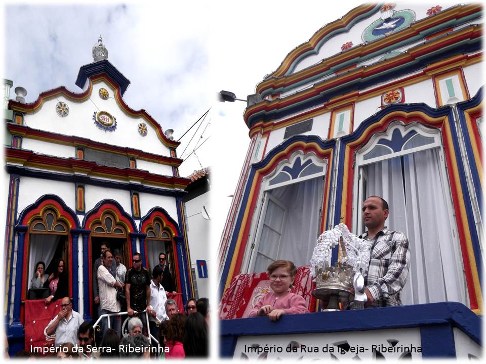 Algumas janelas dos impérios são engalanadas com toalhas e bandeiras com os símbolos do Espírito Santo. Esta temática encontra-se também expressa através de trabalhos em prata e estanho.