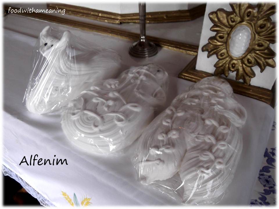 O Alfenim é o doce típico destas festas. A par com os pães de massa sovada, as rosquilhas, também de massa doce, o alfenim é presença obrigatória nos altares dos impérios, fazendo parte depois dos produtos que são arrematados no fim da festa.