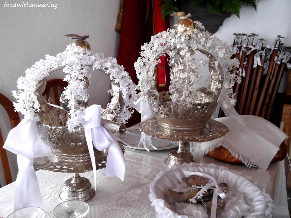 Estas coroas são utilizadas no final da missa para proceder à coroação dos mordomos da festa, quem fez promessa ao Espírito Santo e quem detém toda a despesa que envolve a festa, na qual se inclui o pão.