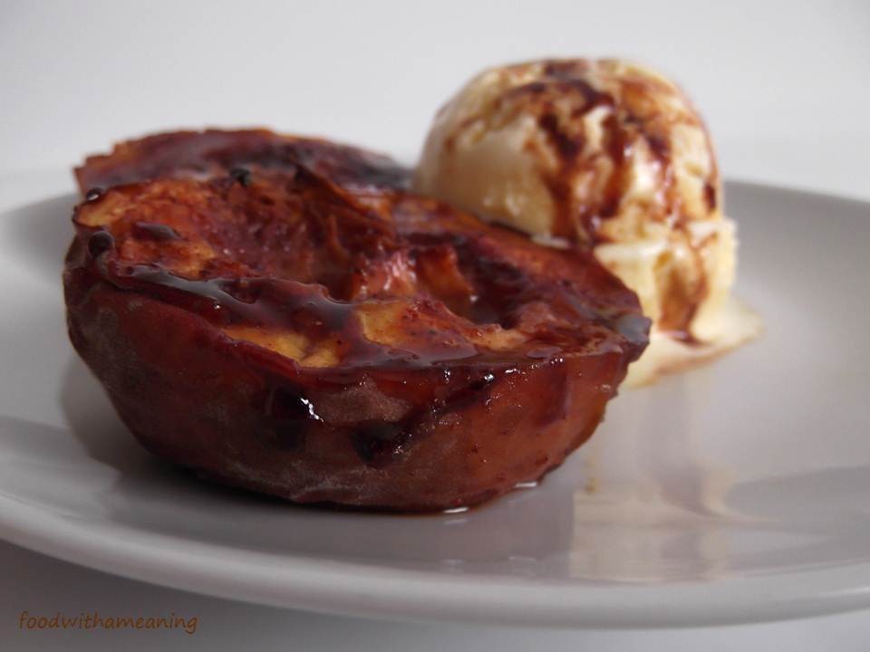 Porque ainda é verão… pêssegos assados com especiarias + gelado de baunilha
