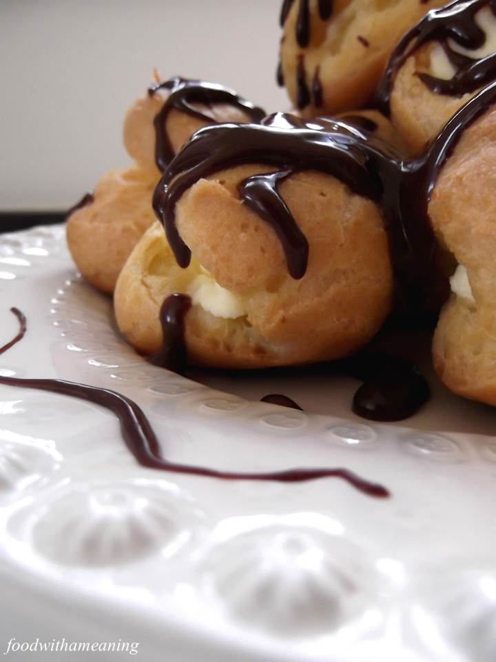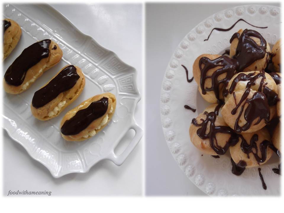 Para o lanche presenteei as minhas amigas com éclairs e profiteroles.