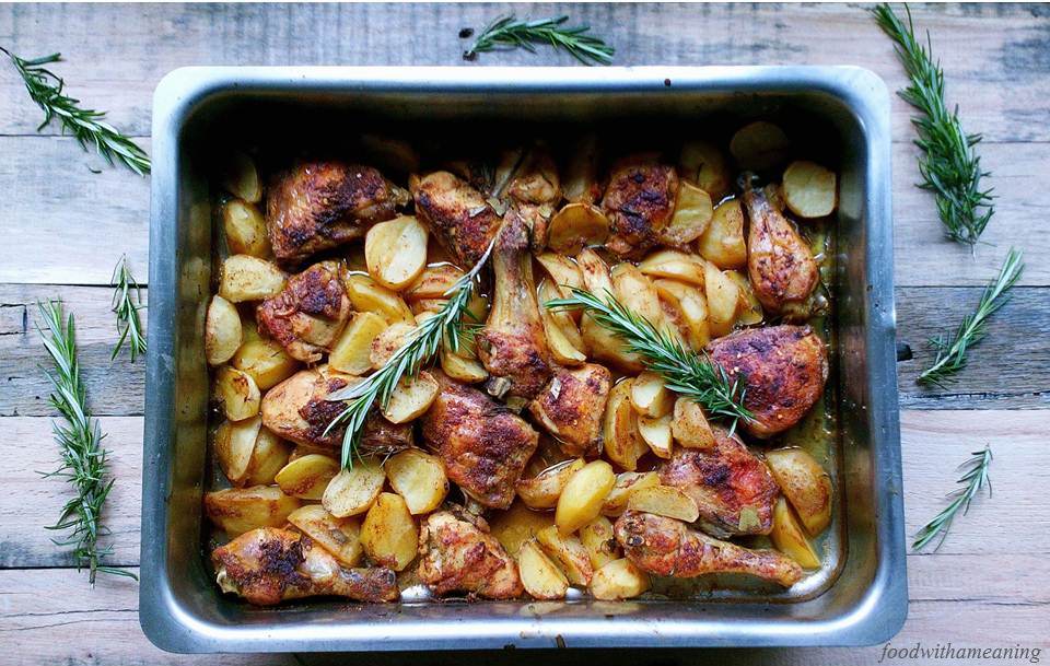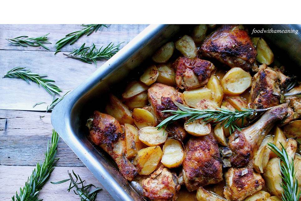 Hoje estive literalmente metida em assados. O dia amanheceu chuvoso e frio, demasiado outonal em plena primavera. Vá-se perceber estas estações! Não sei se se deveu à mudança da hora, mas eram as onze e já tinha um tacho de canja ao lume e um tabuleiro de frango assado com batatas no forno. Nada melhor do que um assado aromatizado com alecrim para perfumar a cozinha.