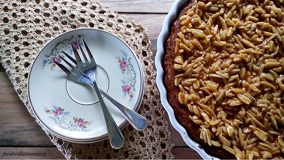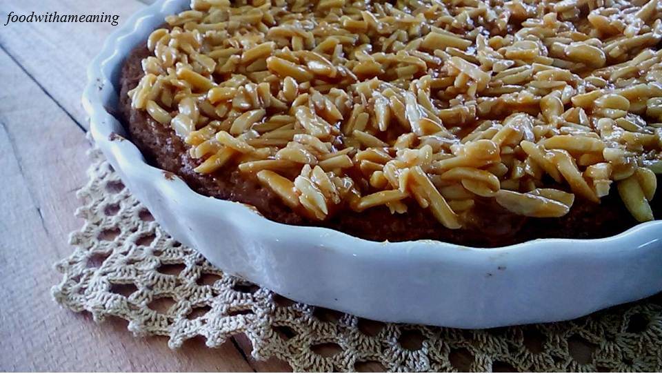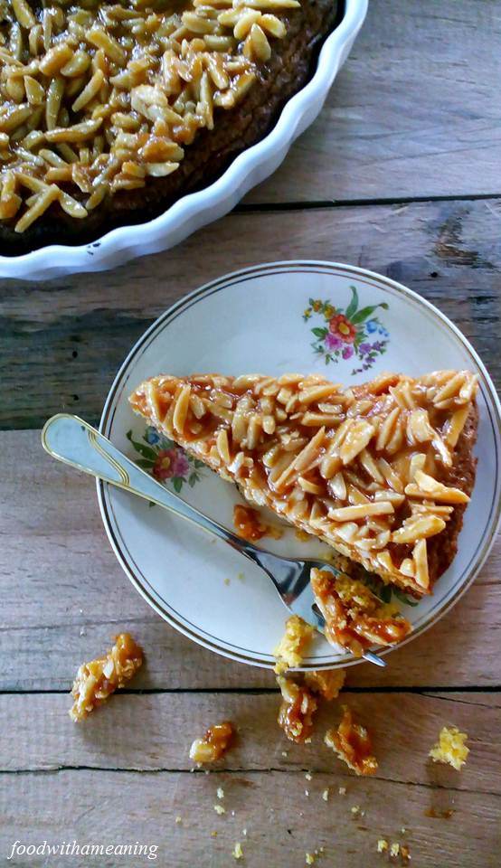 Por acaso não sou muito apreciadora de tarte de amêndoa, apenas porque não gosto de amêndoas. Mas adoro nozes e se esta tarte fpr feita com nozes ficará PERFEITA… por isso vou fingir que estou a ver uma tarte de nozes… E digo-te… Está LINDA.