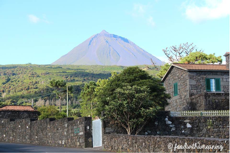Vista para a montanha da nossa casa de férias na ilha do Pico
