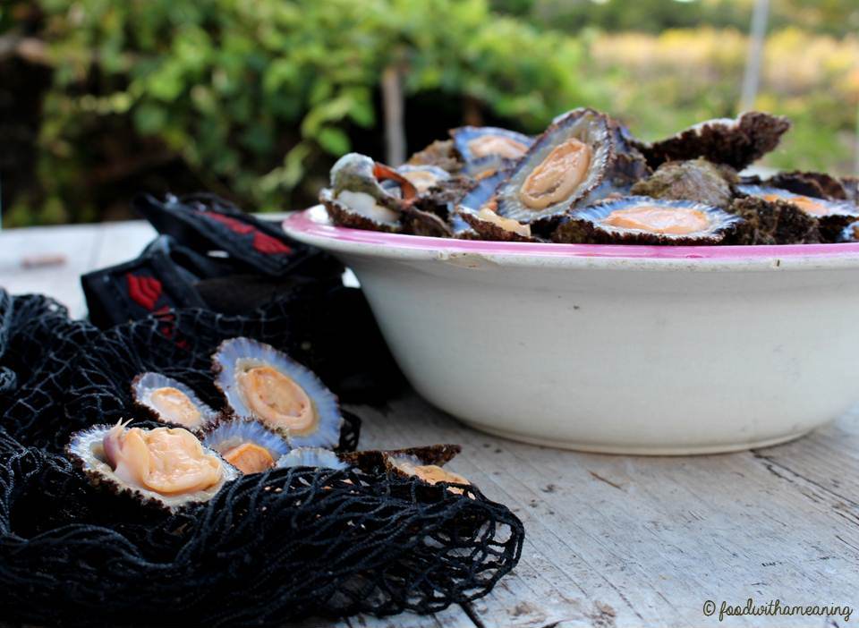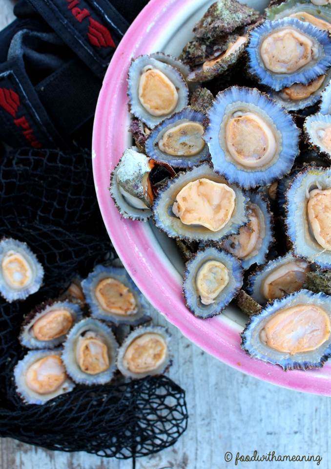 Das férias apenas mostro o que quero. Existem muitos momentos significativos que pertencem à privacidade. Quase todos eles. Mas há imensas coisas, do foro culinário, e não só, que gosto de partilhar convosco. O mar e o campo são aqui presença obrigatória e os meus Açores. Esta necessidade de proximidade do mar é sempre uma parcela das nossas férias. Dele provêm os frutos de muitas das receitas deste blogue, como é o caso desta salada de búzios e lapas, que resultou de mais uma das aventuras subaquáticas do marido: o nosso snorkeler de serviço.