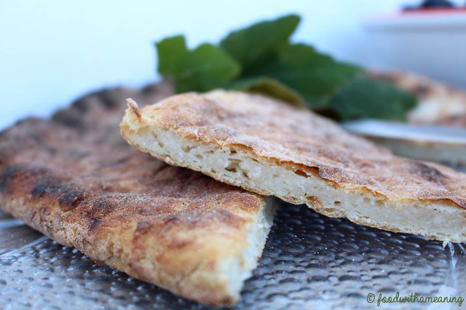 4. Fazem-se bolos de massa (acrescenta-se um pouco de farinha de trigo e amassa-se novamente com as mãos até envolver as farinhas antes de formar a bola final) e estendem-se, numa superfície polvilhada com farinha com 25 cm de diâmetro e 1,5 cm de altura – tamanho da frigideira de barro, se for para serem cozinhados no tijolo.