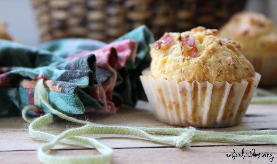 Estes muffins salgados são daquelas coisas que apetecem. Foram feitos para levar para um lanche de amigos mas também poderiam fazer parte da merenda da escola, da marmita do almoço ou até de um cabaz de piquenique.  O sabor deste muffin fez-me viajar até ao folar transmontano, mas em formato pequenino e sem a riqueza interior do verdadeiro folar.
