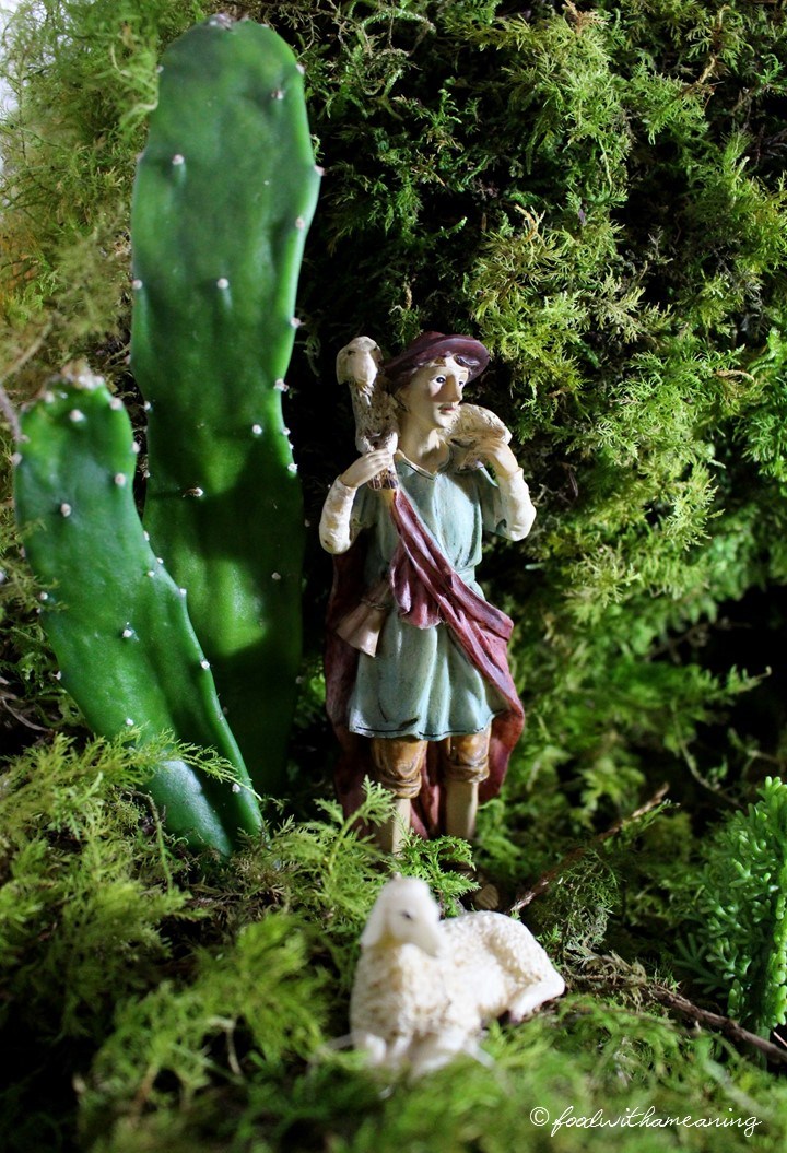 Chegámos um pouco enregelados a casa, mas depressa começamos a desenhar o nosso presépio com as leivas. Preparámos a base, arquitetámos o que seria a gruta do nascimento do menino e os caminhos, que viriam a ser preenchidos com farelo, e estabelecemos recantos com vegetação pequenina.