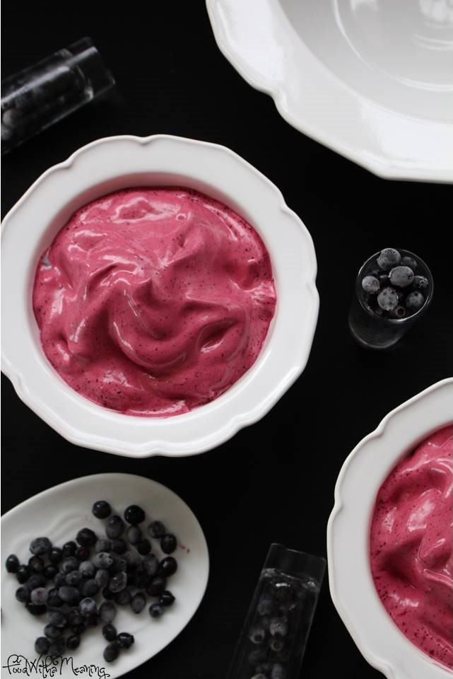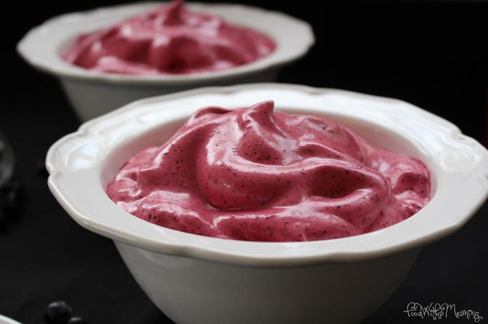 Quando se aproxima o final de agosto, penso em uva-da-serra, o mirtilo endémico açoriano. Com esta fruta já confecionei algumas receitas, que tenho vindo a publicar no blogue. Desta vez, experimentei utilizá-lo para fazer esta mousse. A cor vibrante da sobremesa ganhou destaque quando conjugada com estas taças brancas que adquiri nas promoções DeBorla. Ficou um mimo, não acham?