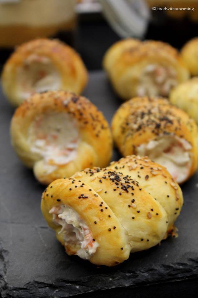 Desenvolvi esta receita para o workshop DeBorla entitulado “Na Cesta do Piquenique”. Ontem descobri que ainda não a tinha partilhado convosco. Na realidade, estas cornucópias de massa fofa são deliciosas para o pequeno almoço, para o lanche ou para um piquenique em família. Podem ser complementadas com um recheio doce ou salgado. Preparei um paté com queijo creme, salmão fumado e alcaparras que encantou quem provou.