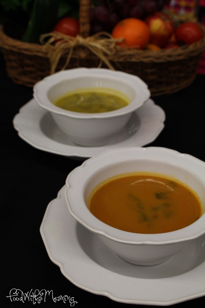 - Numa panela, coloque todos os ingredientes, com exceção dos espinafres, e cubra com água. Tempere com metade do sal que costuma utilizar e deixe cozinhar. Triture com a varinha. Junte mais água até obter a consistência desejada.