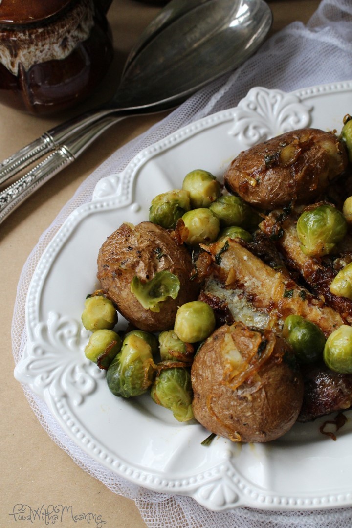 Ingredientes para os acompanhamento de batata e couve-de-bruxelas