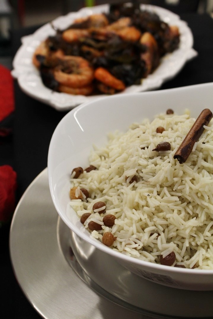 Faz-se um refogado com o alho em manteiga. Colocam-se as sultanas até ficarem inchadas e luzidias. Adiciona-se o arroz e os restantes ingredientes. Envolve-se com a colher de pau por instantes. Junta-se a água e deixa-se cozinhar.