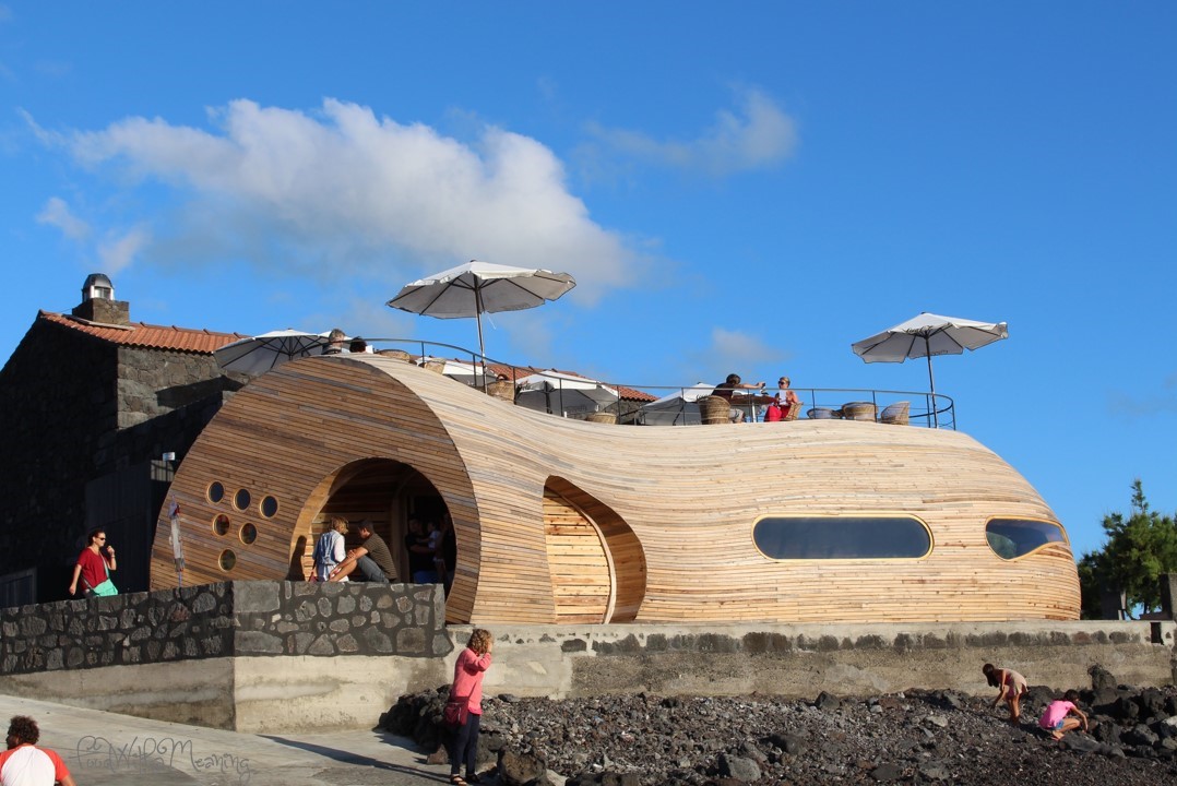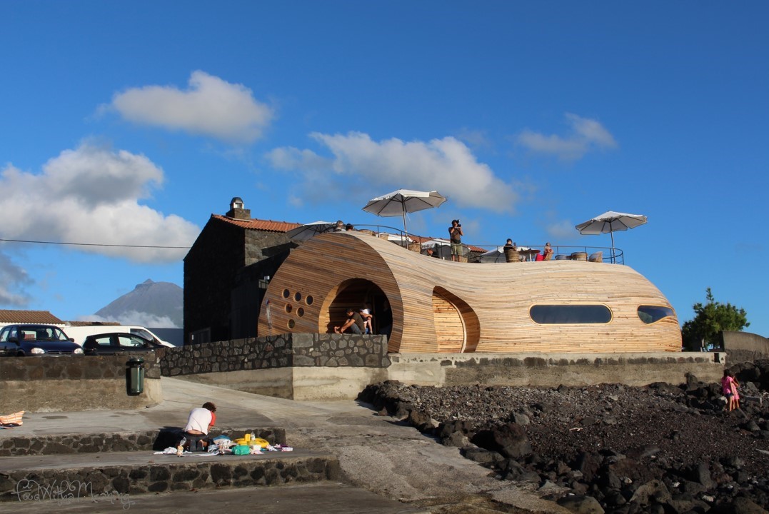 A nossa família não consegue imaginar o verão sem umas semanas na ilha do Pico. O facto de termos casa de veraneio por lá e dos miúdos adorarem as piscinas naturais, as roupas descontraídas e o pé no chinelo leva-nos a escolher o mês de julho para umas férias relaxantes na segunda maior ilha dos Açores, mas que ainda preserva a genuinidade. Num dos nossos passeios pelo extremo ocidental da ilha deparámo-nos com as curvas ousadas e incomuns do Cella Bar. É um bar, como o nome indica, mas é também um restaurante de tapas  e uma obra de arquitectura que está a encantar o mundo. Publicações nacionais e internacionais estão a destacar o trabalho de Fernando Coelho, do atelier FCC Arquitectura, Paulo Lobo, responsável pelo design interior, e ainda Paulo Neves, que gizou a escultura do exterior. O espaço foi dividido em dois: um restaurante numa casa de basalto, abandonada há vários anos e agora recuperada, e um bar numa arrojada estrutura de madeira. A ideia partiu dos sócios e amigos Filipe Paulo, 34 anos, e Fábio Matos, 36, naturais do Pico. Queriam algo que fosse moderno e orgânico, inspirado no vinho e no mar, algo que pudesse atrair turistas para este ponto remoto da ilha. O nosso dia terminou por lá. Que há melhor do que saborear um copo de vinho e umas tapas na esplanada com o cenário de montanha atrás e a ilha do Faial em frente?