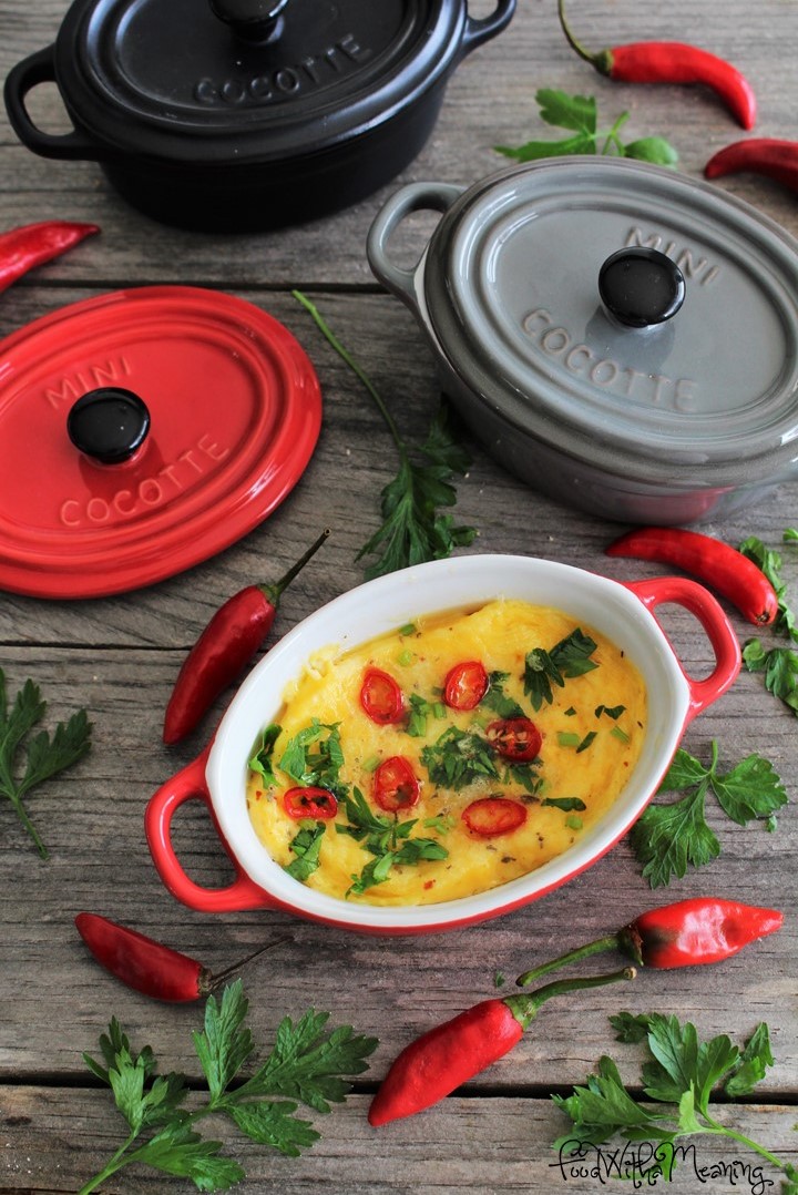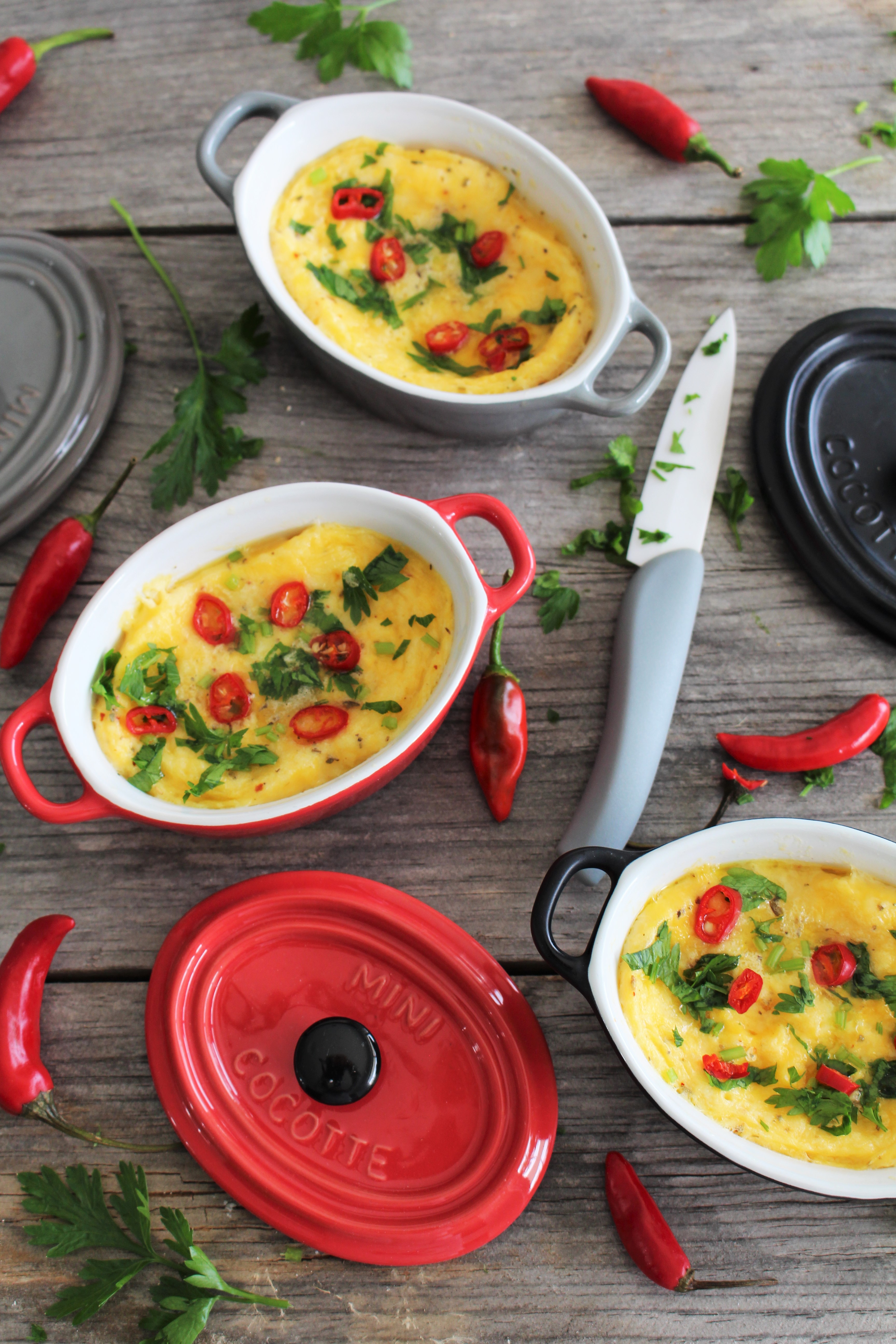 A sugestão com que inicio esta semana insere-se no grupo daquelas receitas que denomino de Receitas-Express. Para além de ser rápida de confecionar, requer também poucos ingredientes e utensílios, apenas as cocottes e um garfo. Logo, esta receita também pertence ao grupo das que sujam pouca loiça. É uma receita básica de omolete, à qual podemos adicionar os ingredientes que desejarmos ou tivermos no frigorífico. Fiambre, pimentos, cebolinho poderão ser outras opções. Por ser uma receita muito versátil, esta adequa-se ao pequeno-almoço, a brunches, a almoços e jantares. De facto, consiste numa simples omolete cozinhada no micro-ondas. A adição de queijo faz com que fique com uma textura suculenta e deliciosa.