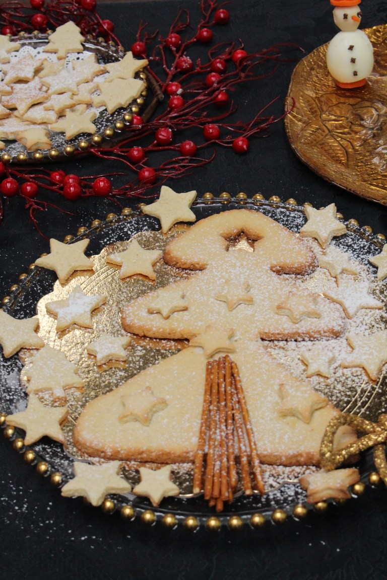 Amassam-se todos os ingredientes, estende-se a massa no tabuleiro que irá levar ao forno forrado com papel vegetal. Com a ponta de uma faca afiada desenhe a árvore de natal.
