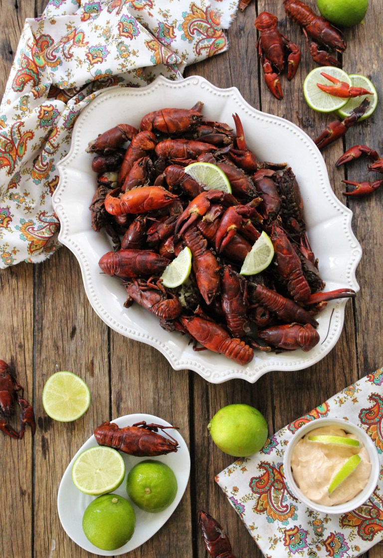 Lagostins com molho de maionese de lima