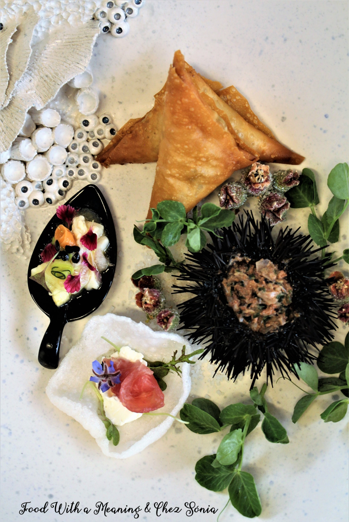 O sucesso das edições do maior evento empresarial dos Açores na ilha de São Miguel catapultou o festival Wine in Azores para a ilha Terceira, tendo-se realizado cá, este fim de semana, a segunda edição e comemorado a 10ª edição regional. Este evento estreou o novo Pavilhão Multiusos do Parque Multissetorial da Ilha Terceira, localizado em Angra do Heroísmo e associou-se a uma Exposição de Atividades Económicas. A Gorgeous Azores levou este festival de vinhos e de produtos regionais até aos terceirenses e seus visitantes e soube sabiamente conjugá-lo com um palco de showcookings, workshops vínicos e espetáculos de cocktails. Marcaram presença neste evento, que decorreu de 25 a 27 de maio, chefes nacionais de renome, tais como Renato Cunha, Francisco Gomes, António Loureiro e Daniel Gomes. Neste certame gastronómico, a ilha Terceira, em particular, e os Açores, em geral, fizeram-se representar com qualidade e diversidade por Márcio Silva, chefe do Restaurante Cais D’Angra, detentor de múltiplos prémios em todas as edições dos festivais de gastronomia da ilha Terceira, pela Quinta do Martelo, que dinamizou um showcooking de Alcatras, prato típico da ilha, e pelas dinamizadoras de showcookings e de eventos Patrícia Cheio, autora do site Food with a Meaning, e por Sónia Melo, autora do site Chez Sónia, ambas presenças habituais nas edições do Wine in Azores. A organização desafiou as açorianas para um showcooking a 4 mãos. O alinhamento colocou em destaque pratos de peixe, uma parceria com a Peixaria Silveira, que foram apresentados nas peças do artista terceirense Adolfo Mendonça e embelezados pelas micro ervas da Quinta do Ti Canoa. O paté de ovas de ouriço representou a receita envolta em maior curiosidade devido ao facto de ser uma proposta inovadora e criativa, pela primeira vez enaltecida publicamente na região e confecionada com ouriços locais. Do cardápio fizeram parte um ceviche de cherne com pickle de cenoura e courgete e vinagrete de maracujá, chamuças com recheio de ovas de abrótea e cherne e de algas, acompanhadas com um molho composto por crème fraiche e compota de malagueta e flores de atum com queijo creme, servidas em hóstias de camarão.