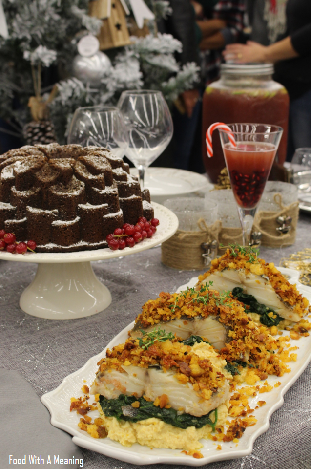 10. Para servir, disponha o puré de grão num prato ou numa travessa. De seguida coloque, por cima do puré, os espinafres salteados e o lombo de bacalhau. Regue com azeite da confitagem e cubra a superfície do lombo com o crumble de broa e tomate seco.