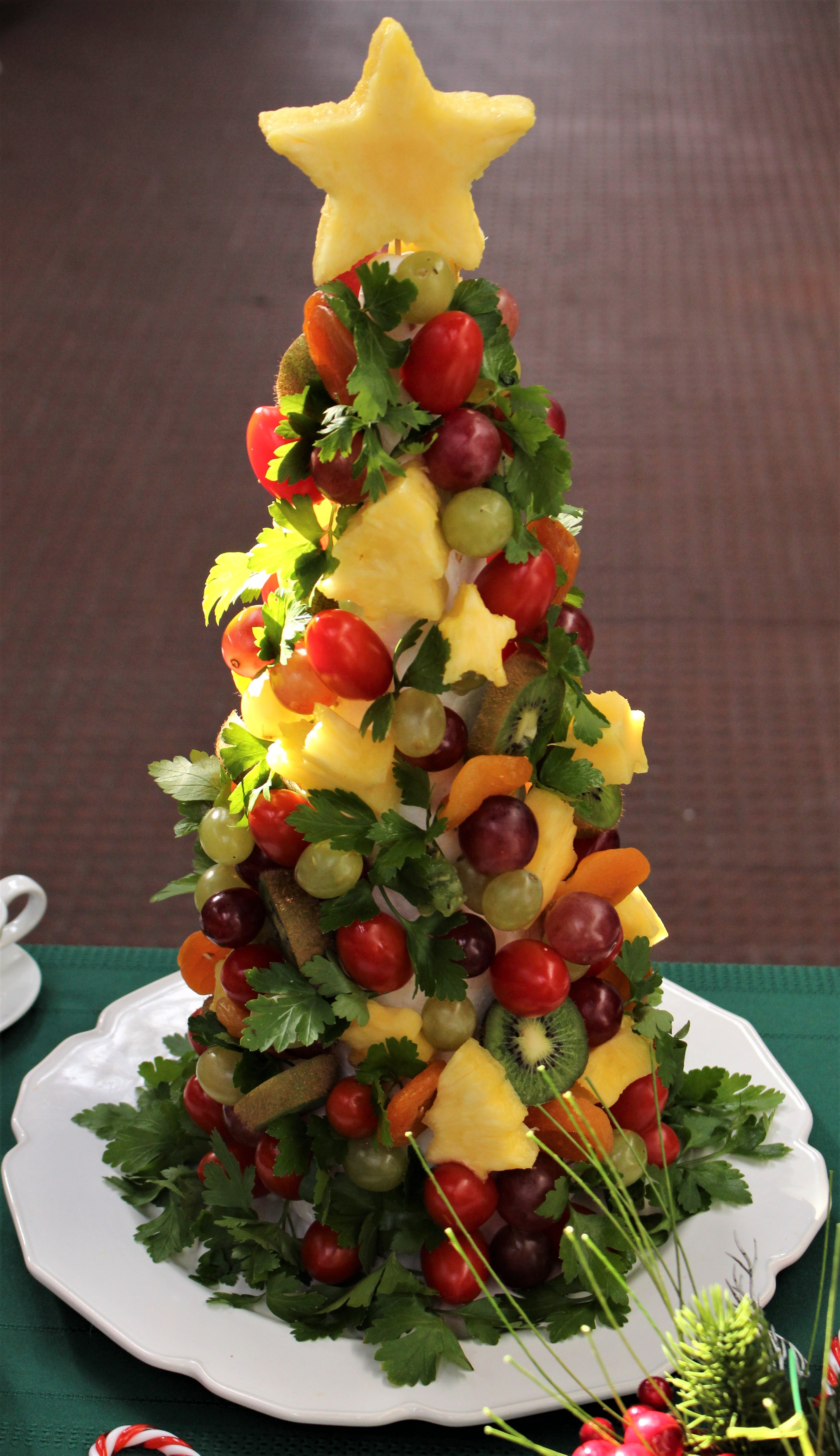 - Frutas variadas: uvas verdes e pretas, morangos, kiwis, melão, araçá, ananás; tomates-cereja, etc.