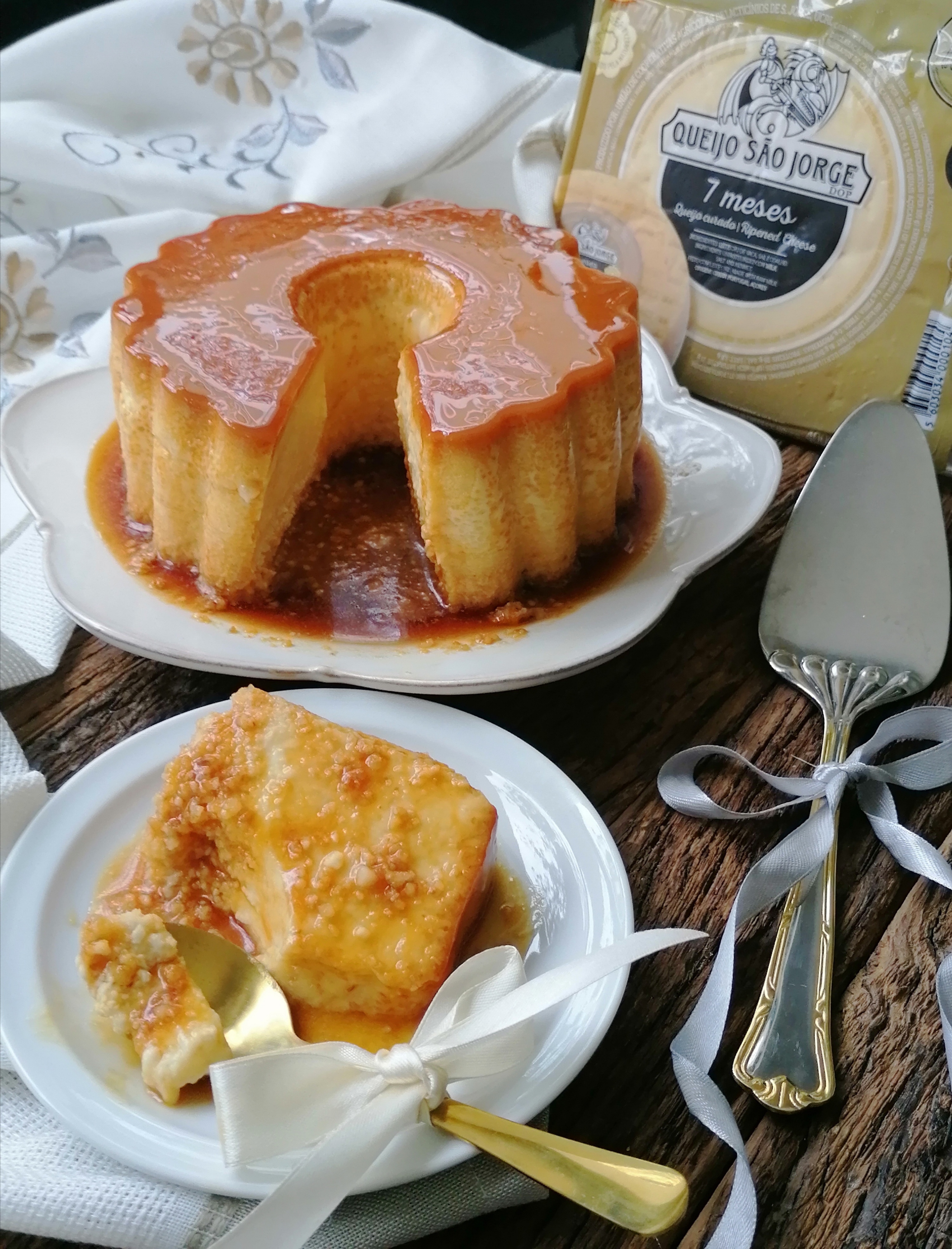 Uma rápida pesquisa pelo site, no separador Queijo, é prova da frequência em que utilizo queijo curado S. Jorge em inúmeras receitas, quase todas salgadas. Hoje, trago uma sugestão doce, de um pudim de ovos e queijo que surpreendeu.