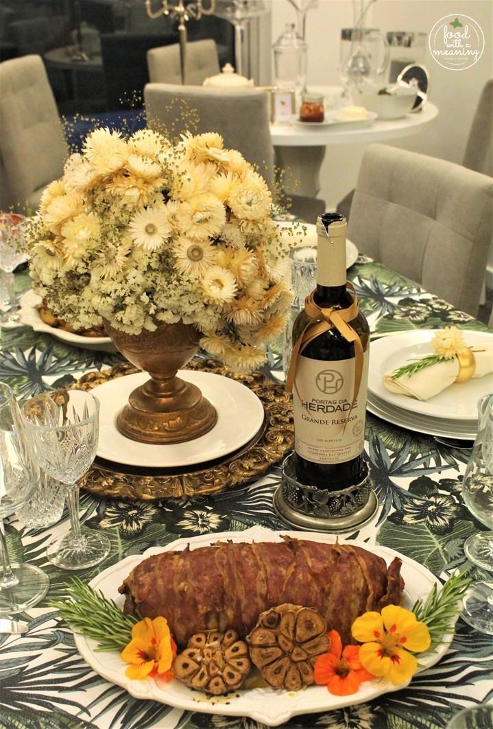 A Quinta dos Açores, minha parceira, aliou-se a este projeto e com flores, e com uma peça de categoria extra (ganso redondo), criámos todos uma mesa bonita.