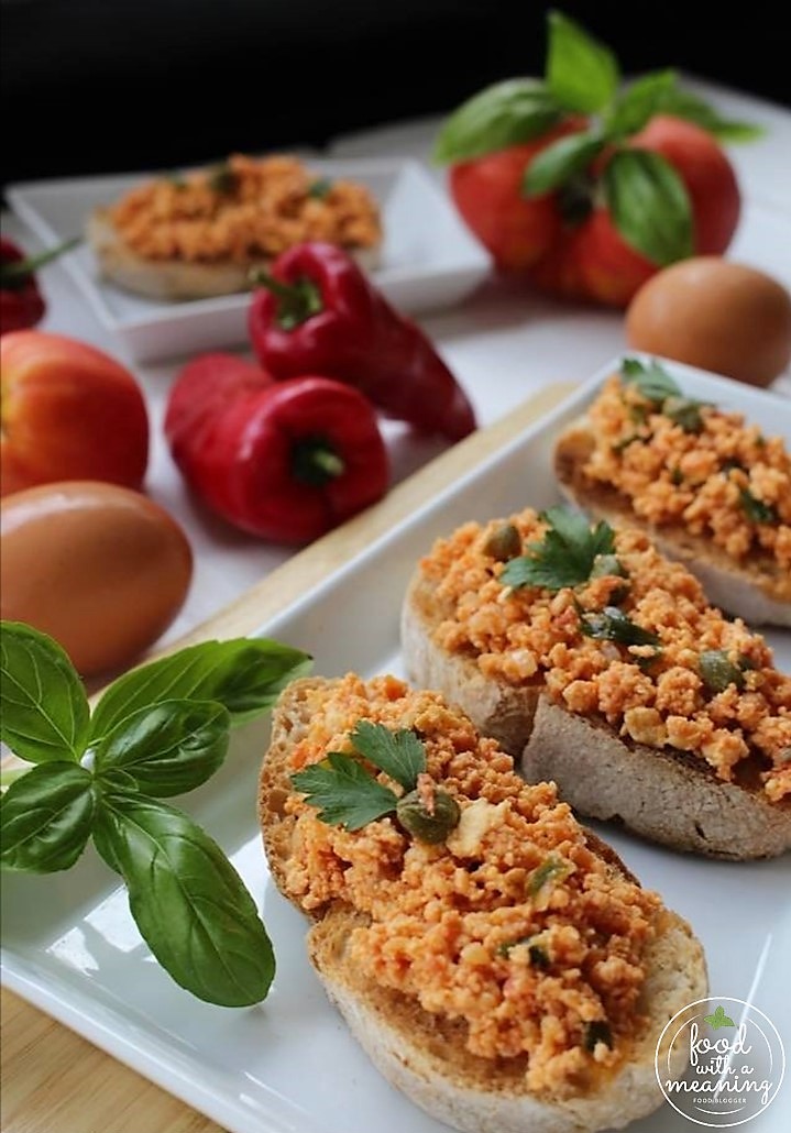 Coloquei as fatias de pão numa travessa e preenchi-as com o preparado de ovos. Servi de imediato.