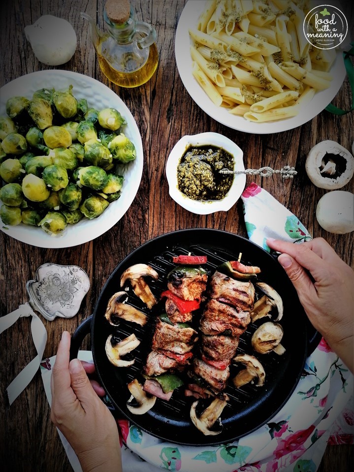 Dos acompanhamentos das espetadas de bovino também fizeram parte couve-de Bruxelas, que, depois de cozidas, foram salteadas em azeite, alho temperadas com um pouco de paprika defumada.
