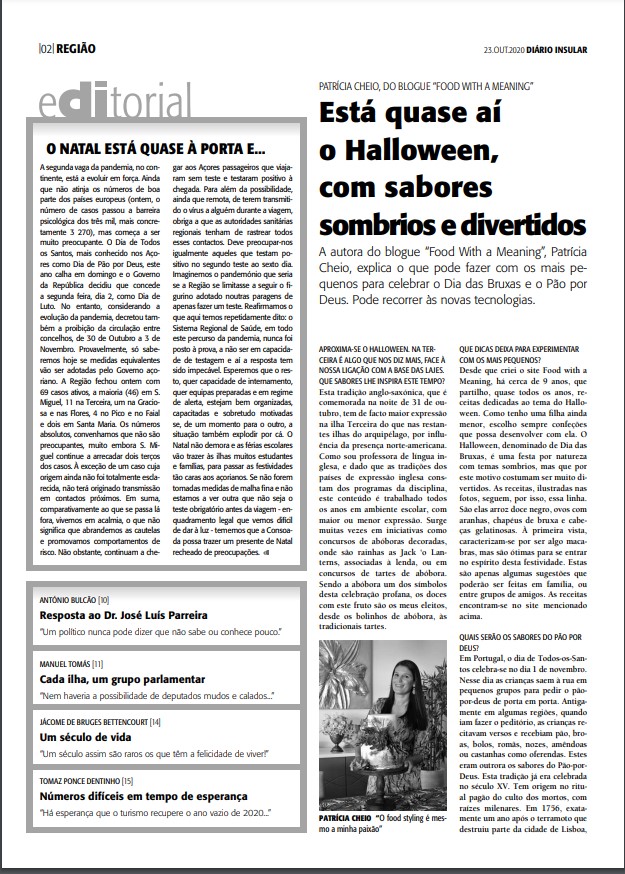 Posted in Festas, Publicações, receitas tradicionaisTagged Diário Insular, Halloween e Pão por Deus, TradiçõesBy foodwithameaning