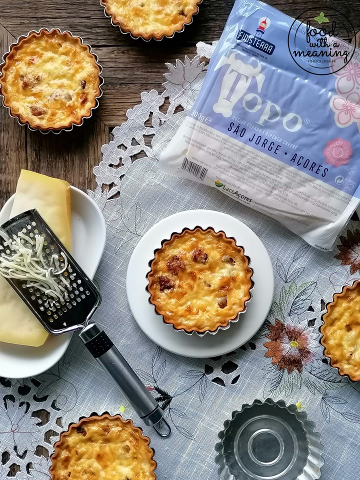 8. No fundo de cada tartelete coloque pedacinhos de linguiça a gosto.