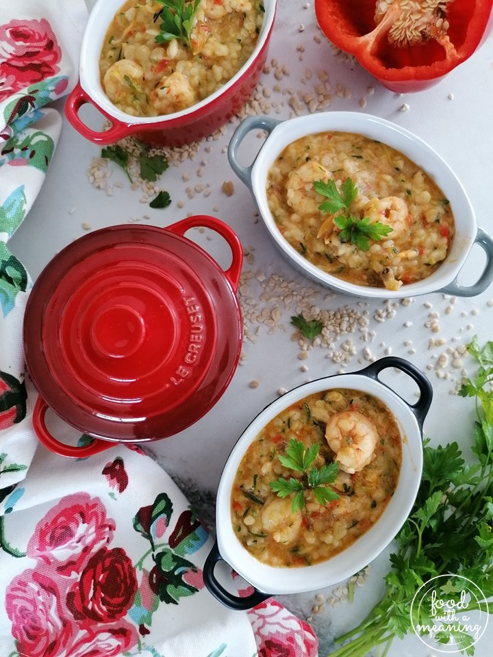 Ora vejam o Cuscotto de Miolo de Camarão e Ameijoa!
