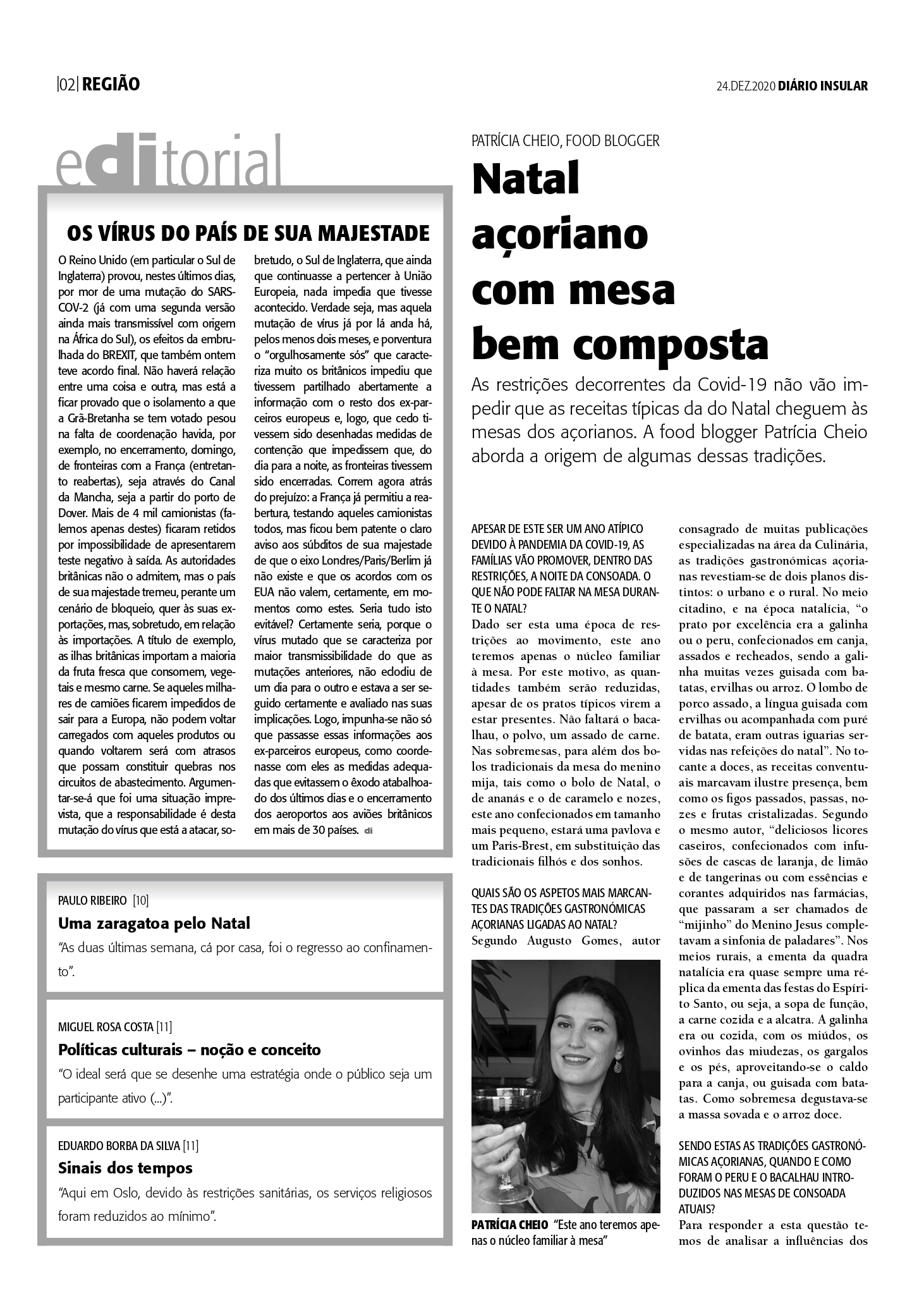 As tradições açorianas não vão impedir que receitas típicas do Natal não cheguem à mesa dos açorianos. A food blogger Patrícia Cheio aborda a origem de algumas dessas tradições.
