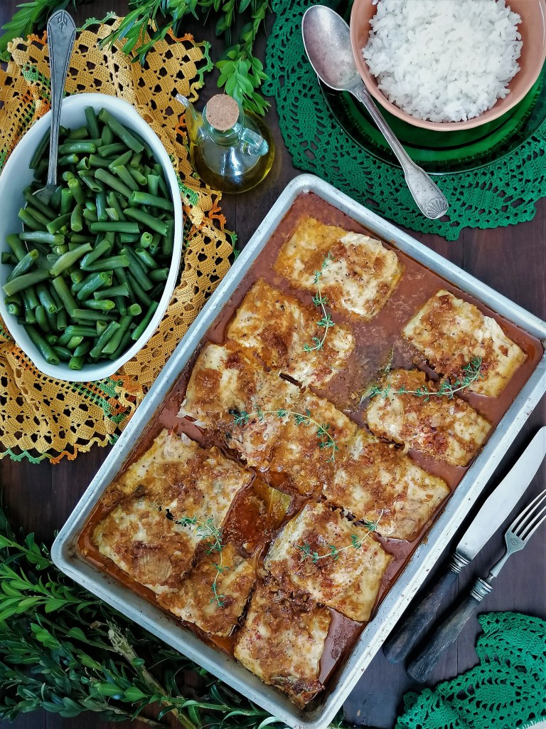 A proposta que vos trago hoje, de confeção fácil e rápida, é uma receita que faço muitas vezes. Quer sejam postas ou lombos, basta apenas demolhar, ou comprar já demolhado, e preparar o molho que lhe vai conferir um sabor delicioso. Explico tudo abaixo.