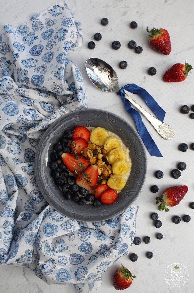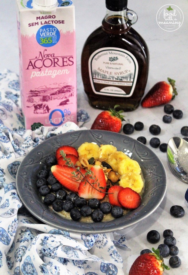 Papas de Aveia sem Lactose com Fruta e Xarope de Ácer
