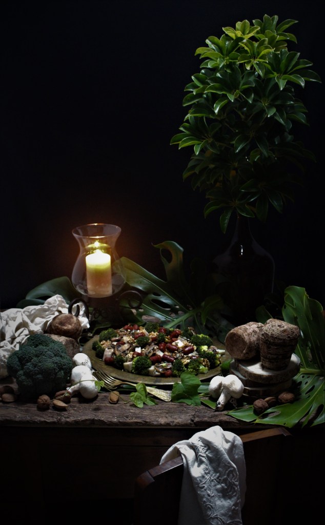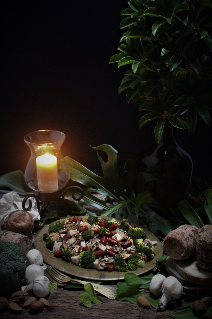 Nestes dias frios e escuros só apetece comida de conforto que, por norma, ou é de panela ou de forno. Resolvi trocar as voltas e fazer uma salada de inverno de inhame, cogumelos, brócolos e linguiça. Complementei com nozes e sementes de abóbora tostadas. Uma delícia!
