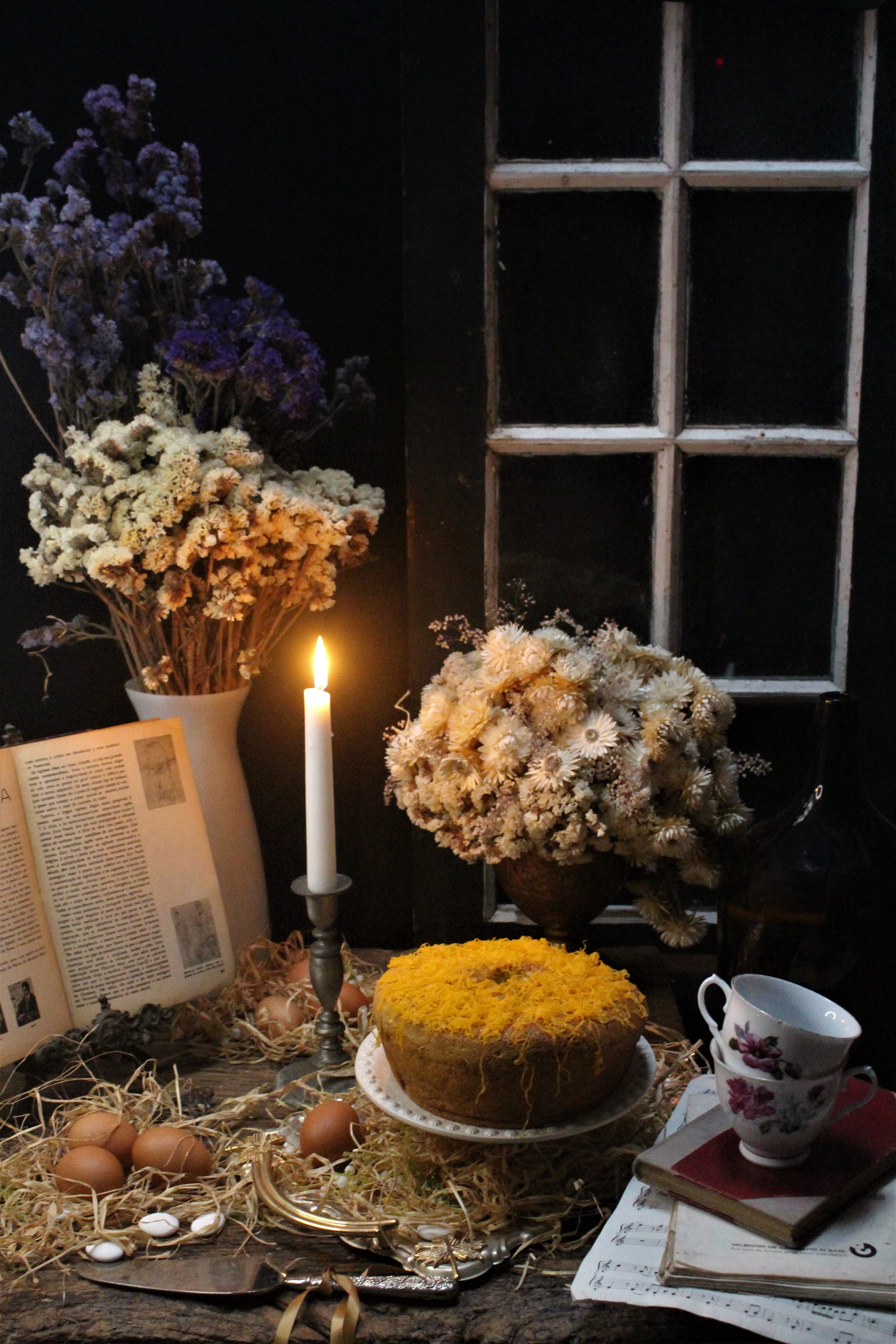 Hoje, trago-vos o pão-de-ló tradicional, aquele mais “aguentadinho” ao jeito de bolinho. Incluí-lhe uma raspinha de limão. Ficou delicioso.Optei por fazê-lo pequenino (come-se menos) só para “não ouvir nas orelhas”. Decorei-o com fios de ovos e tenho ali (mas eles ainda não sabem) doce de ovos acabadinho de fazer para barrarem a fatia.